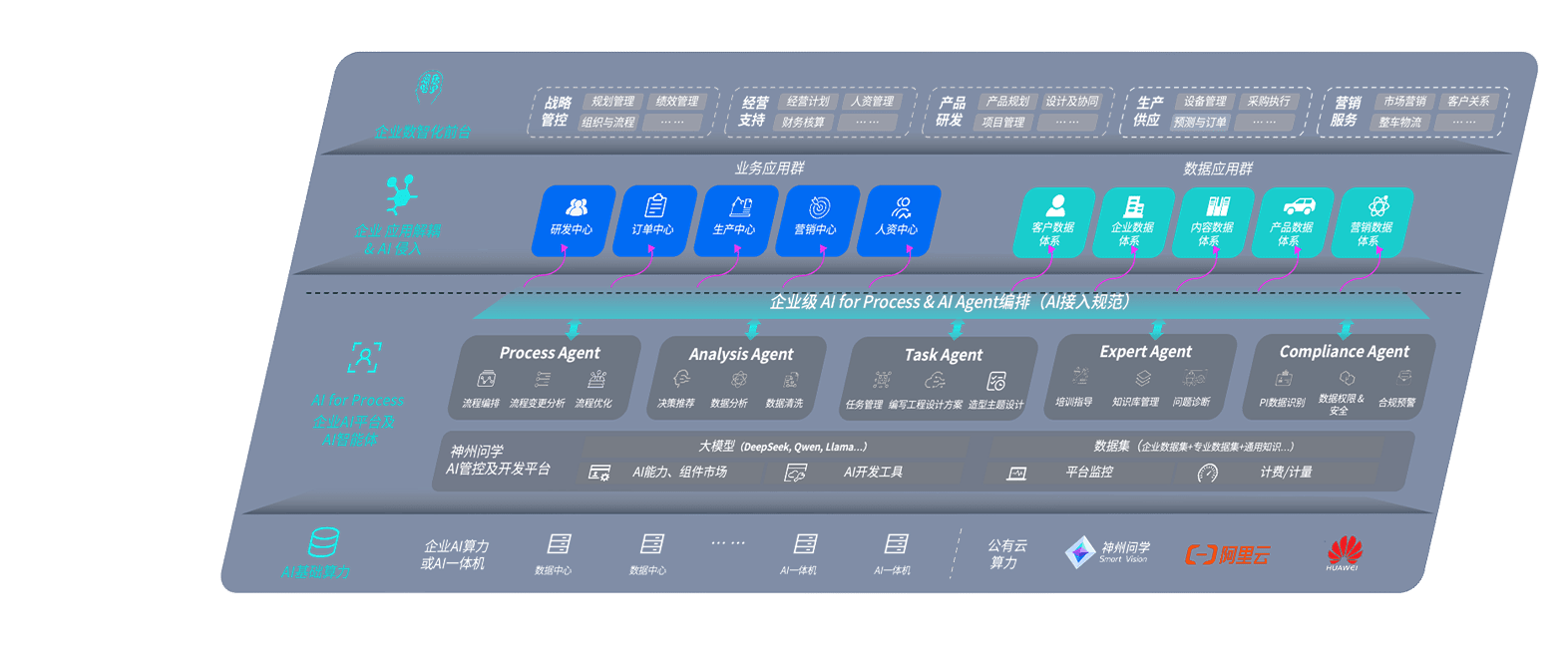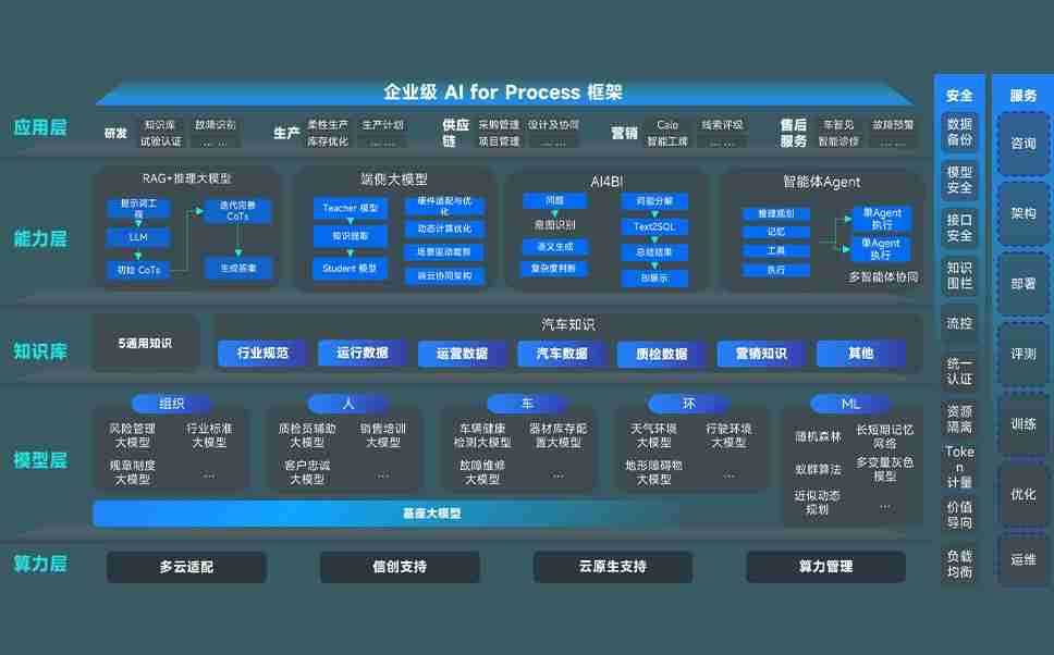 端到端的一站式AI工作空间深度融合了从企业战略规划到日常经营的全流程业务板块,,,,定向解决车企内部领域多、、、部门多、、、链条长、、、场景碎片化等难题,,支持车企快速构建以AI为核心的生产力写作体系,,,,实现任务执行与AI能力的无缝集成与交互